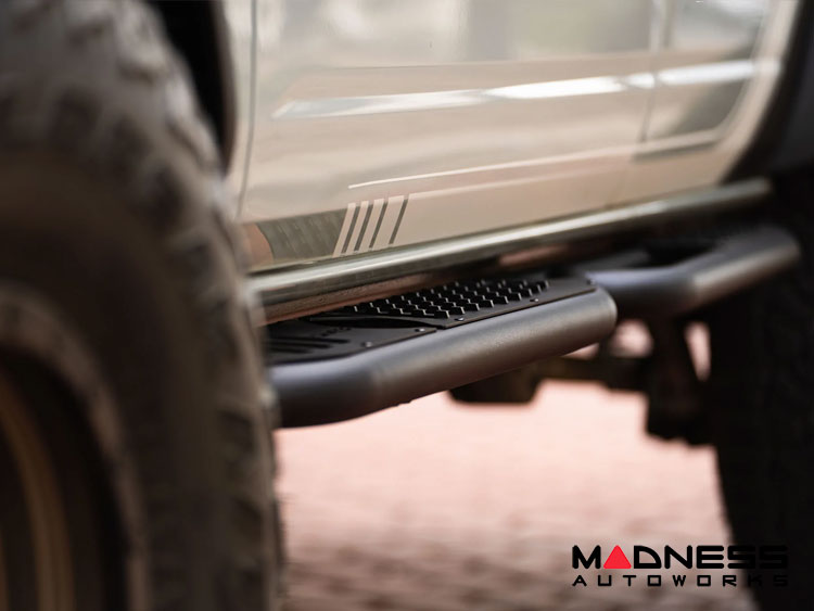 These are perfect for those who will be running their Bronco as a daily driver, especially if you’ve given your Bronco a lift. The 2mm thick steel tube supports are topped by 3mm & 5mm thick steel plates with bike pedal-like teeth to provide sure footing when entering or exiting the cab.