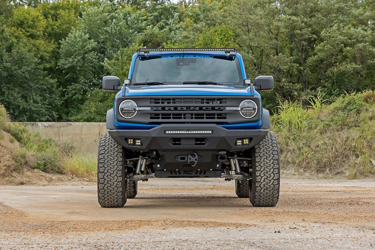 The Ford Bronco Hidden Winch Mount by Rough Country for the model years '21-'25 is the perfect accessory for those looking to blend utility and rugged style. This mount is designed to support winches up to 12,000 lbs, providing you with the confidence to conquer any terrain or recovery tasks your adventures require.