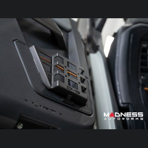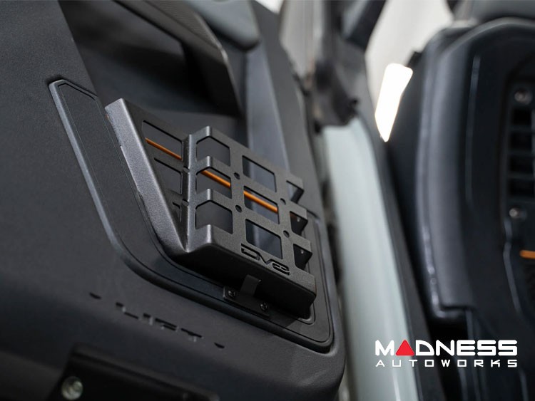 Not only do these Molle panels enhance storage capabilities, but they also feature a design that protrudes just enough to comfortably fit your favorite water bottle or coffee thermos. Whether you’re heading off the beaten path or simply commuting, you can keep your beverages within easy reach. Finished in a sleek micro-texture black powder coat, these panels seamlessly complement the stylish interior of your Bronco while adding a rugged touch.