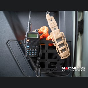 Upgrade your 6th Generation Ford Bronco's rear seating area with this Ford Bronco Door Pocket Panels - Molle - DV8 - Rear. These innovative panels are designed to replace the saggy factory door nets, which often leave your space cluttered and unorganized. These Molle panels hold their form, providing you with a sturdy and dependable storage solution that maximizes functionality. With these panels, you'll be able to securely transport small tools, pouches, kits, and more, making your everyday adventures more convenient.
