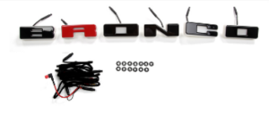 The Ford Bronco LED Front Grille Letter Kit comes with a variety of letters that can be used to spell out "BRONCO". This version comes in Black with the R in Red. This is the perfect accessory to enhance the look of your Ford Bronco. Made from high-quality materials, these grille letters are designed to withstand the elements and provide a long-lasting upgrade to your vehicle.