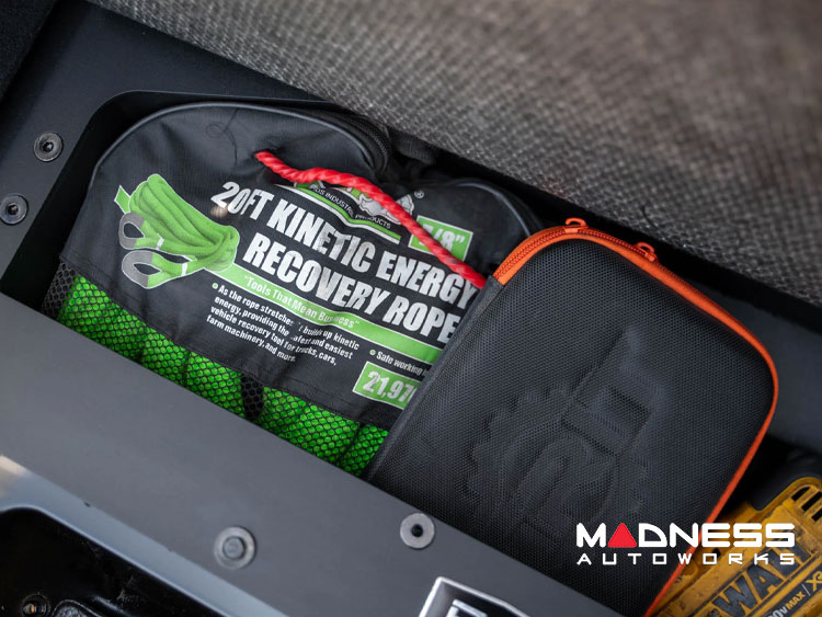 Upgrade your 6th Gen Ford Bronco with the DV8 Interior Storage Compartment, the ultimate solution for those looking to maximize their vehicle's storage capabilities without compromising on style or durability. This innovative compartment offers a remarkable 54% increase in storage volume compared to the flimsy factory storage box, ensuring that you have ample space for your air hoses, recovery gear, tools, and other essential equipment. Whether you're heading out for an adventure or simply commuting around town, this compartment keeps your valuables out of sight while providing unmatched space efficiency.