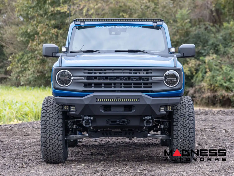 The Ford Bronco is back and better than ever! Rough Country has hit the ground running to give your 2021-up Ford Bronco an improved, aggressive stance with a 5-inch lift kit!