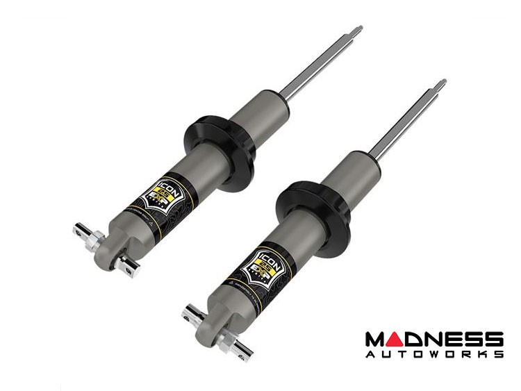 EXP Series shocks utilize a one-piece digressive piston design and are custom tuned for the Bronco in conjunction with their stock coil springs to maximize damping performance and provide unsurpassed ride quality, on and off-road. The increased piston size and shock oil volume provided by the 2.5-inch diameter aluminum body also provide superior heat dissipation compared to the smaller, steel bodied OE shocks, resulting in longer-lasting shock performance over prolonged use at higher speeds and through rougher terrain. For those who would like to further tune their suspension, EXP shocks are fully re-valvable (and rebuildable) by any qualified shock technician, with parts available from ICON.