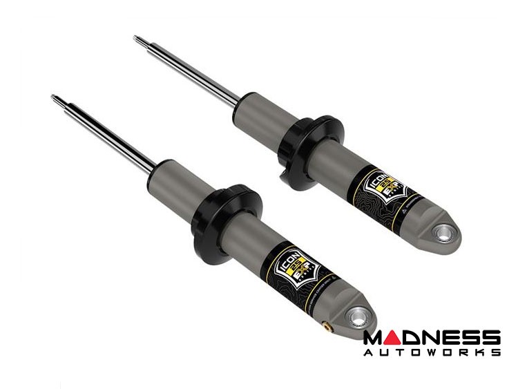 EXP Series is based on ICON’s proven 2.5-inch diameter Aluminum Series shock absorber, featuring a one-piece impact-extruded aluminum shock body. Hard anodizing provides a great-looking, consistent finish with superior resistance to abrasion and corrosion. The massive 7/8-inch diameter shaft is induction hardened and chrome plated. EXP shocks use the factory shaft-up orientation, with the shaft ends machined to re-use the Bronco’s OE upper shock and spring mounts.