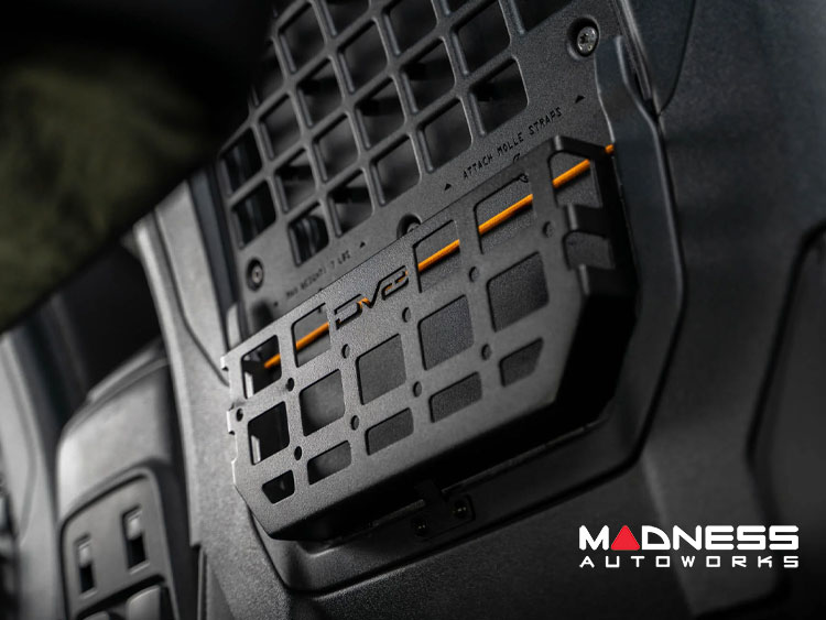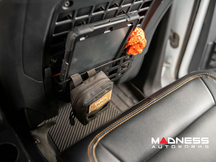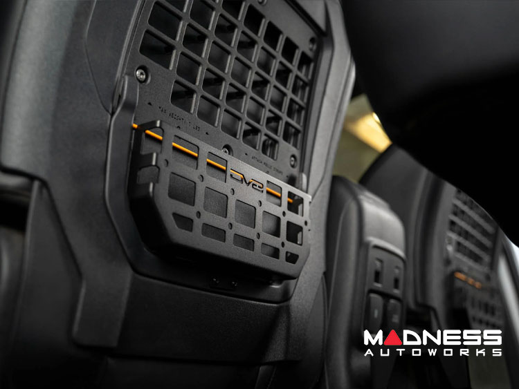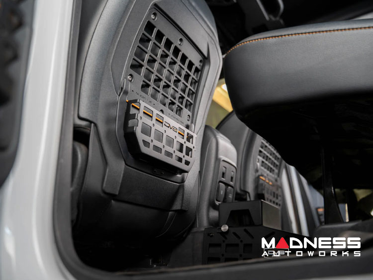 Upgrade your 6th Gen Ford Bronco's storage capacity with these specially designed Ford Bronco Molle Panels - Seat Back Pockets. Bid farewell to the inadequate factory netting and embrace the strength and functionality of rigid steel panels. These panels not only enhance storage capabilities but also add a rugged, tactical touch to your Bronco's interior. With their innovative Molle design, these seat back pockets offer multiple mounting points for a wide variety of accessories including pouches, med kits, multi-tools, knife sheaths, radios, and other essential gear needed for both off-road adventures and daily commutes.