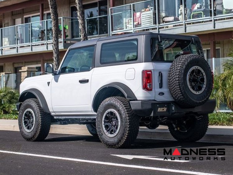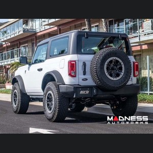 The Ford Bronco Performance Exhaust - Axle Back - Dual Exit - Black - Polished Tips delivers an unmatched audial experience and boosts the aesthetic appeal of your Bronco. Engineered by Borla, this ATAK Axle Back Exhaust System significantly elevates your driving experience with a bolder, more commanding sound.