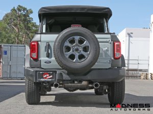 This Ford Bronco cat-back exhaust system is constructed of 3 IN - 2-1/2 IN mandrel-bent 304 stainless steel tubing for maximum strength and durability.