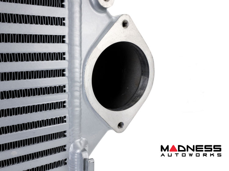 Compared to the factory tube-and-fin intercooler with plastic end tanks, durability against heat, pressure, and debris on the road or trail is significantly improved over stock.