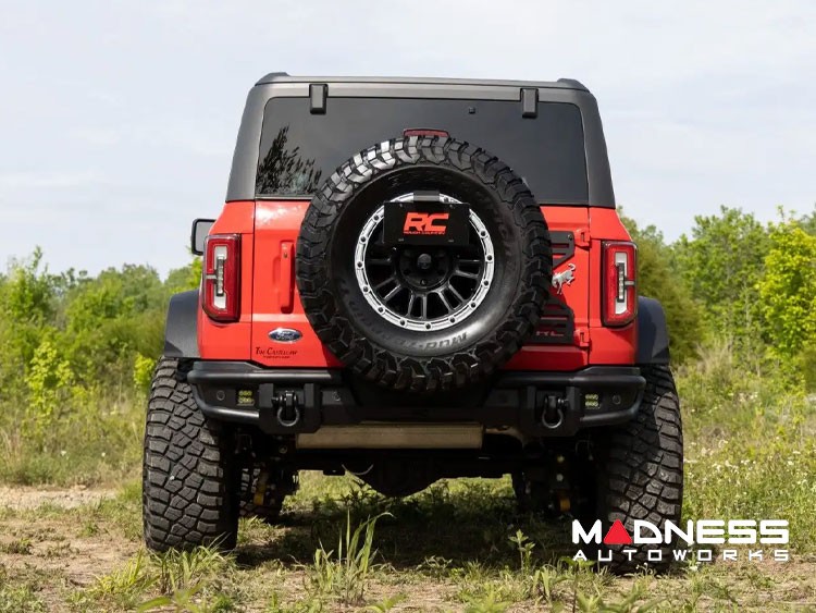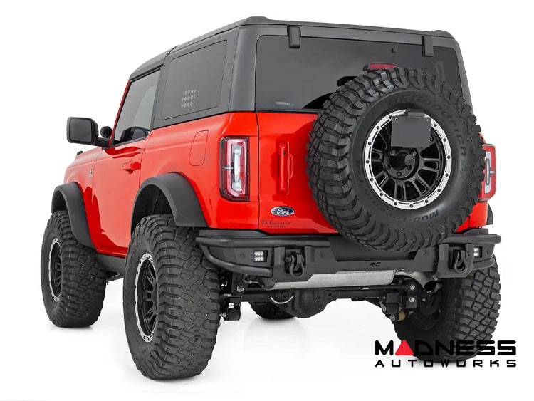 The Ford Bronco Tubular Rear Bumper w/ Black Series Cube Lights from Rough Country is the perfect addition to beef up your Bronco’s rear end. Made from durable steel, this bumper offers unmatched protection while giving you increased tire clearance for maximum off-road articulation.