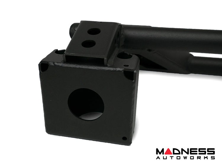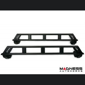 These tubular sliders mount directly to the frame using factory hardware, providing maximum rigidity and preventing damage or bending to the steel side body panels. The tubes are constructed from 3mm steel & the plates are made from 5mm steel, ensuring they can take a hit where it counts. They come finished in a Micro-Texture Black Powder Coat to match factory trim and prevent rust. These will clear up to 38-inch tires.