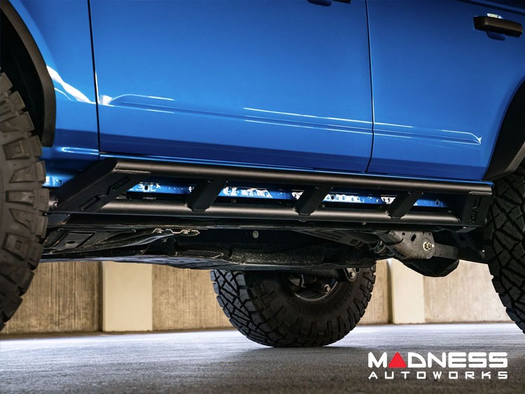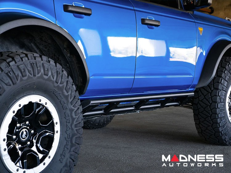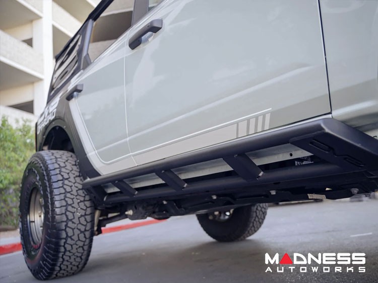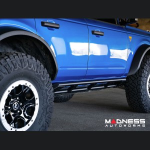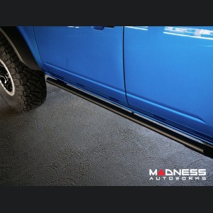 Modeled after the most popular rock sliders for the Bronco’s main rival, the design has been heavily trail tested and approved over the years. These were built for those who push their rig to the max off-road, and will protect the sides of your ride from large rocks and other obstacles on the trail. They serve as a more robust replacement for the available factory steel rail.