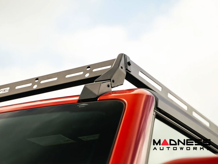This fully bolt-on roof rack is your new best friend for any adventure, featuring multiple tie-down points and lighting mounting locations to ensure your Bronco is ready to tackle anything. Please note, this rack is compatible only with the 2-Door 2021 Ford Bronco with factory hard top.