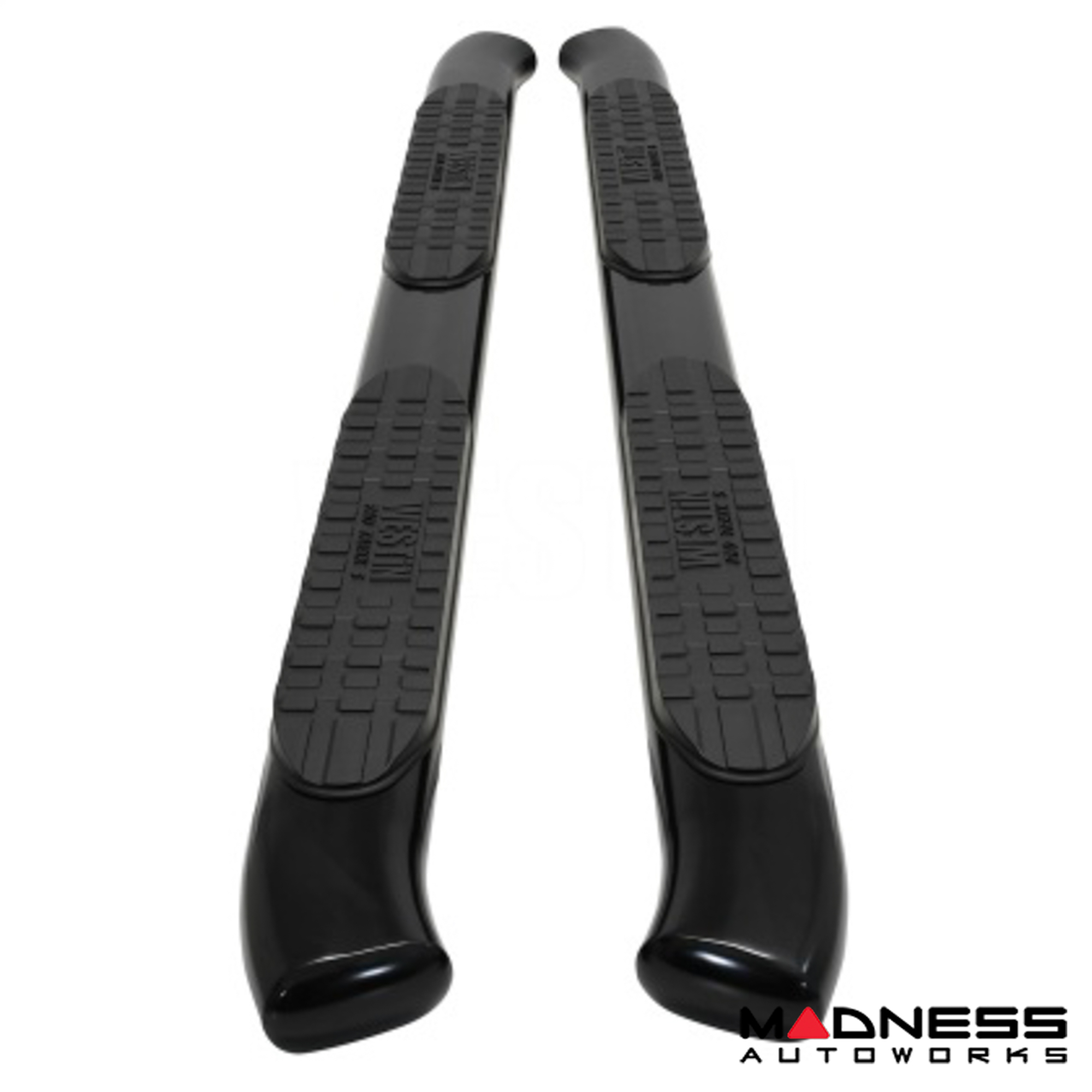 Westins Pro Traxx 5 Oval Nerf Step Bars feature a 5" oval tube with a heavy-duty step pad that provides a wider and more secure step area. They feature 30° factory style bends that have seamless domed ends so there are no end-caps or exposed bolt heads.