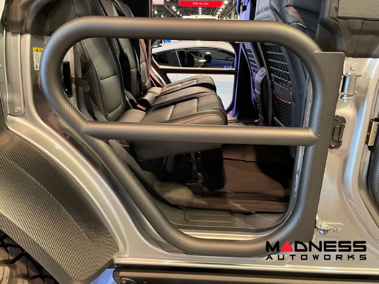 Transform your Ford Bronco 4 Door with the Anderson Composites Carbon Fiber Tube Doors, designed to offer an unparalleled blend of style and functionality.
