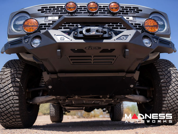 Optional Skid Plate: Elevate your off-road armor with an optional 3/16-inch aluminum skid plate, providing superior protection compared to the factory plastic skid. This addition enhances your Bronco's resilience in challenging terrain.