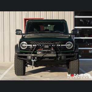 Looking to take your off-roading game to the next level? Then you need a High Winch Mount! This bad boy works with factory steel modular bumpers for your Ford Bronco and allows the installation of 9500lb or larger winches - perfect for those who like to live on the wild side. Our High Winch Mount also includes an optional 20-inch light bar so you can see what you're getting into. So whether you're an experienced off-roader or just looking to take your adventures to new heights, the High Winch Mount is a must-have!