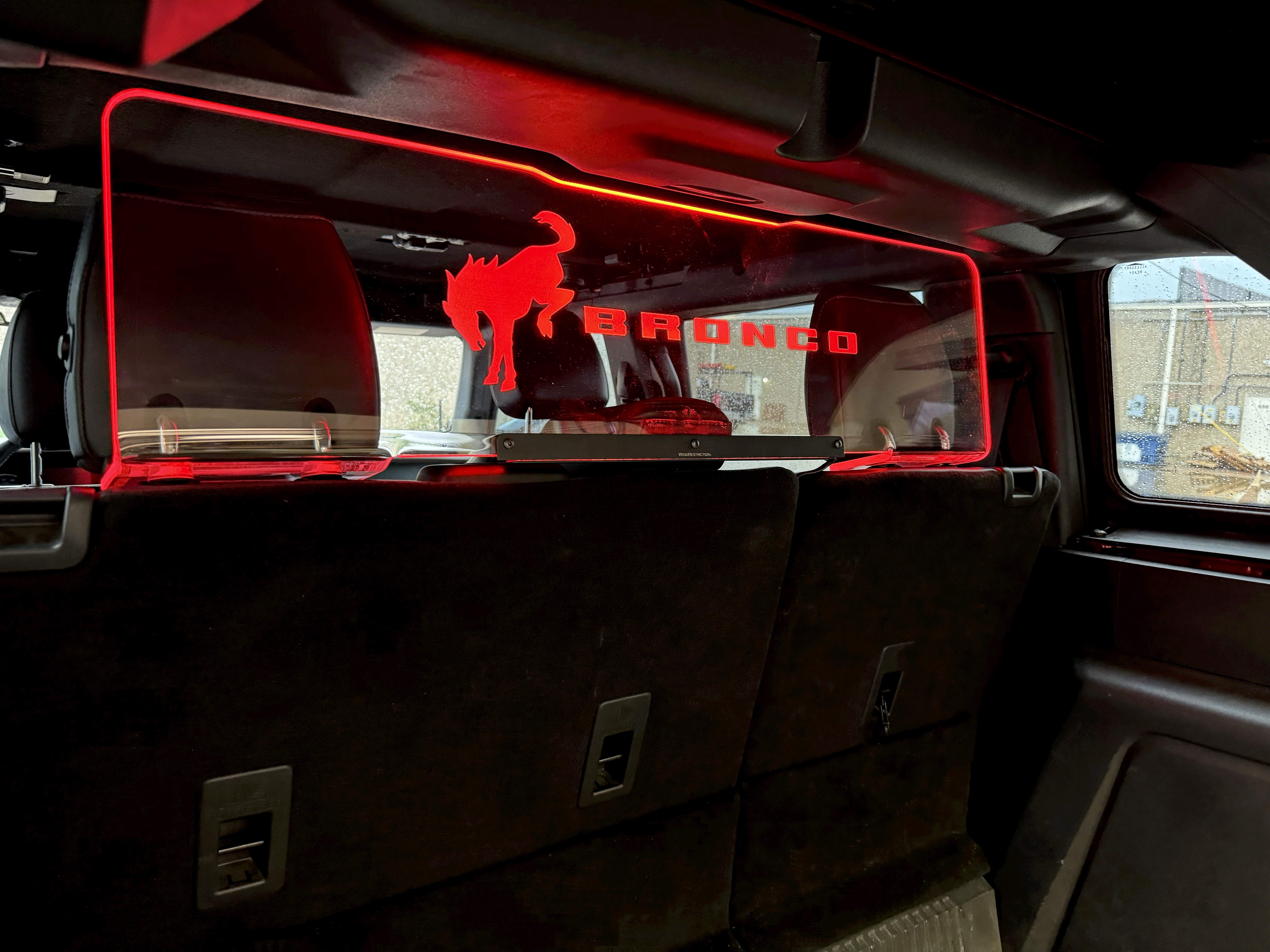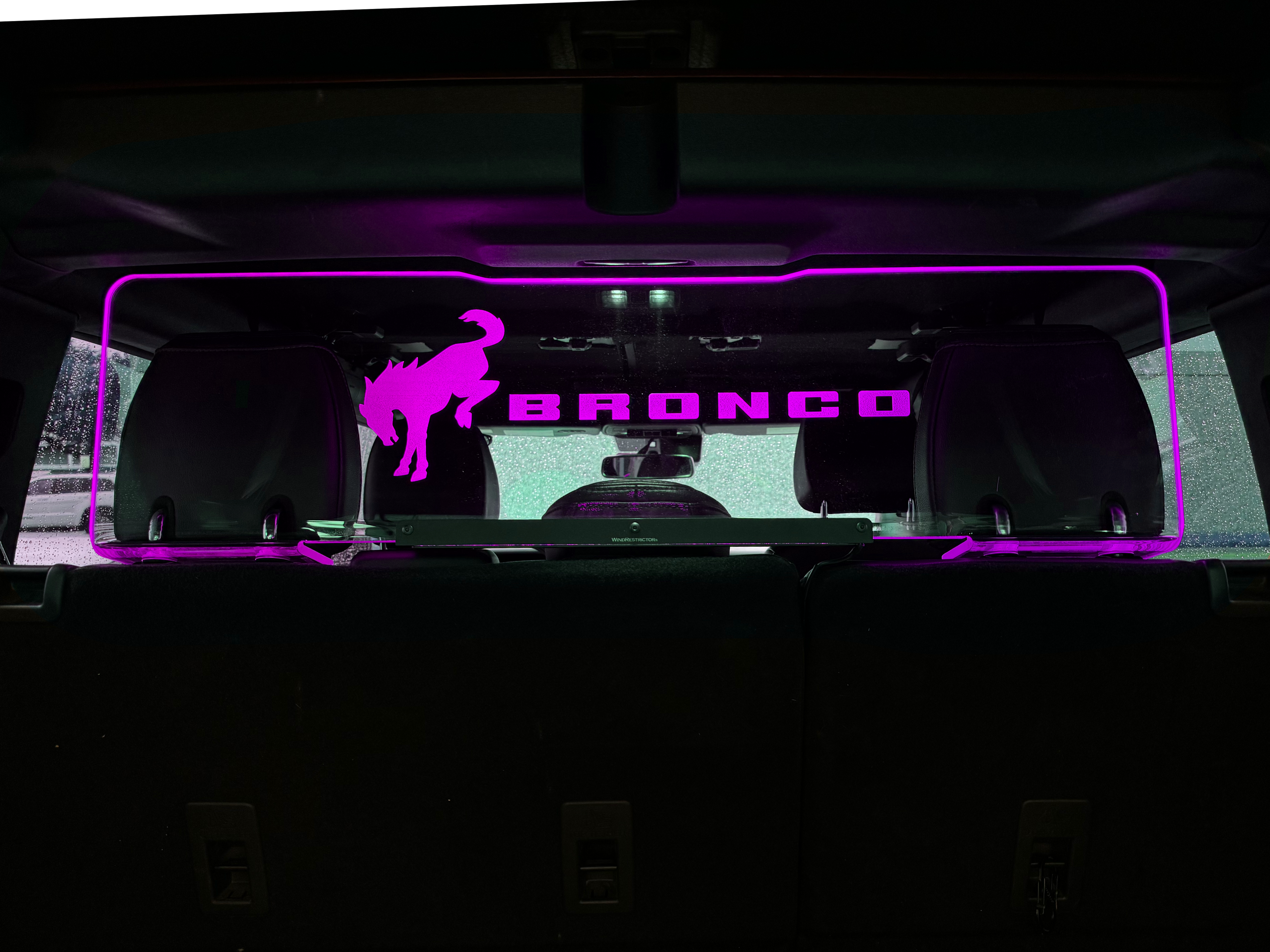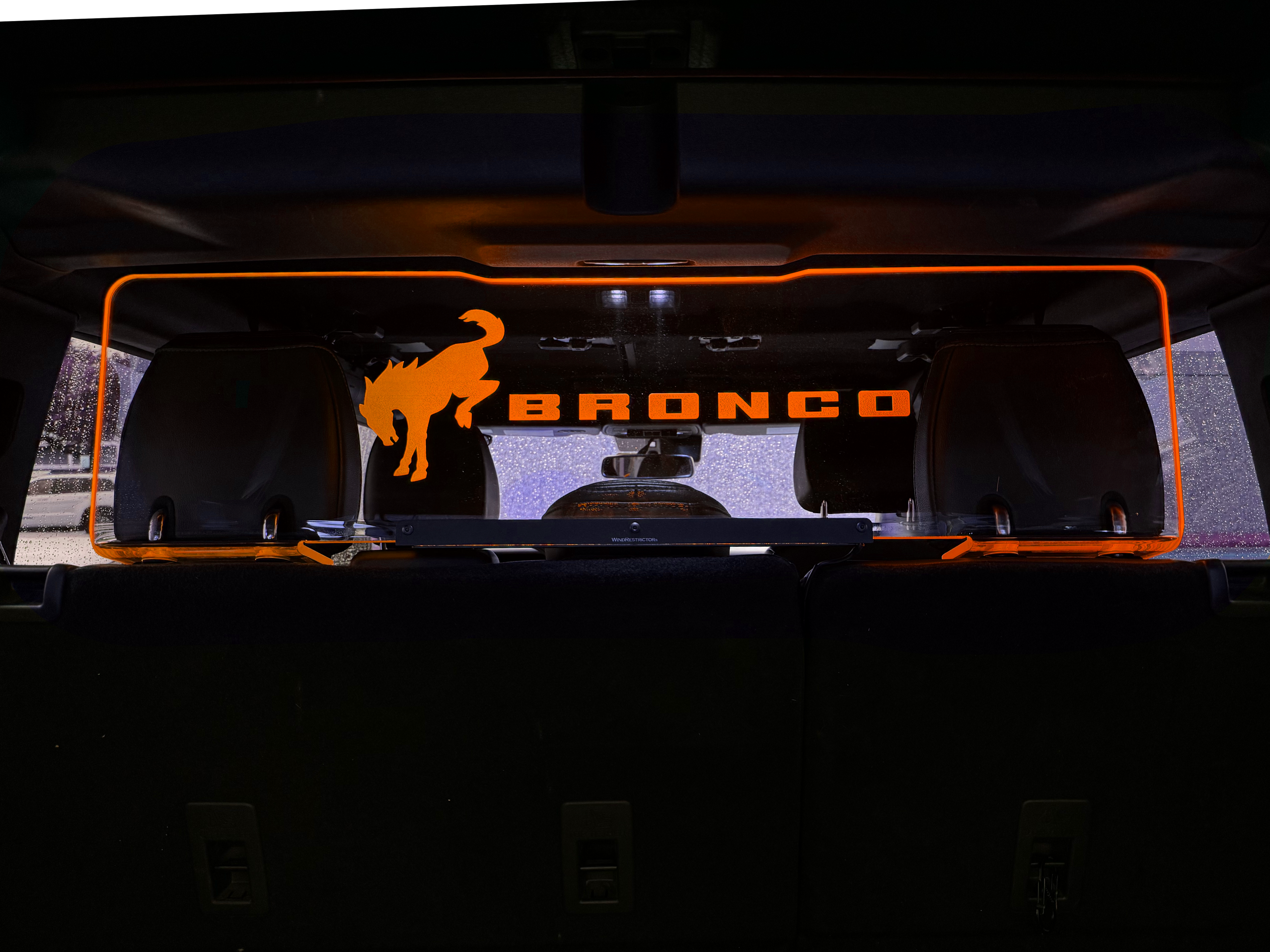 The Ford Bronco WindRestrictor® is the perfect combination of form and function, designed to enhance your top-down drives while making a bold style statement. Enjoy the open air without the discomfort of wind noise and turbulence, all while adding a stunning LED lighting effect to your cabin.