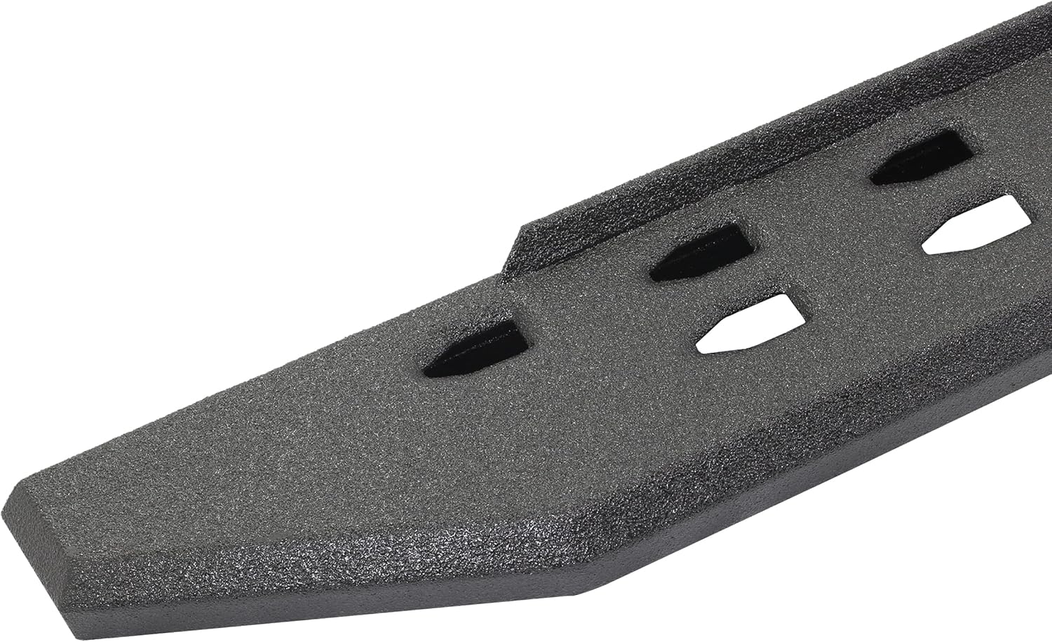The Raptor-inspired aesthetic of the RB20 Slim Line Running Boards is accentuated by a bullet-stamped pattern that spans the 5 1/2-inch-wide stepping surface. This narrow form factor, compared to the 7 1/2 inches of the original RB20, ensures a secure and comfortable platform without compromising on clearance. Designed to cater to a wide range of vehicles, they are available in cab-length sizes, compatible with trucks, Jeeps, and SUVs.