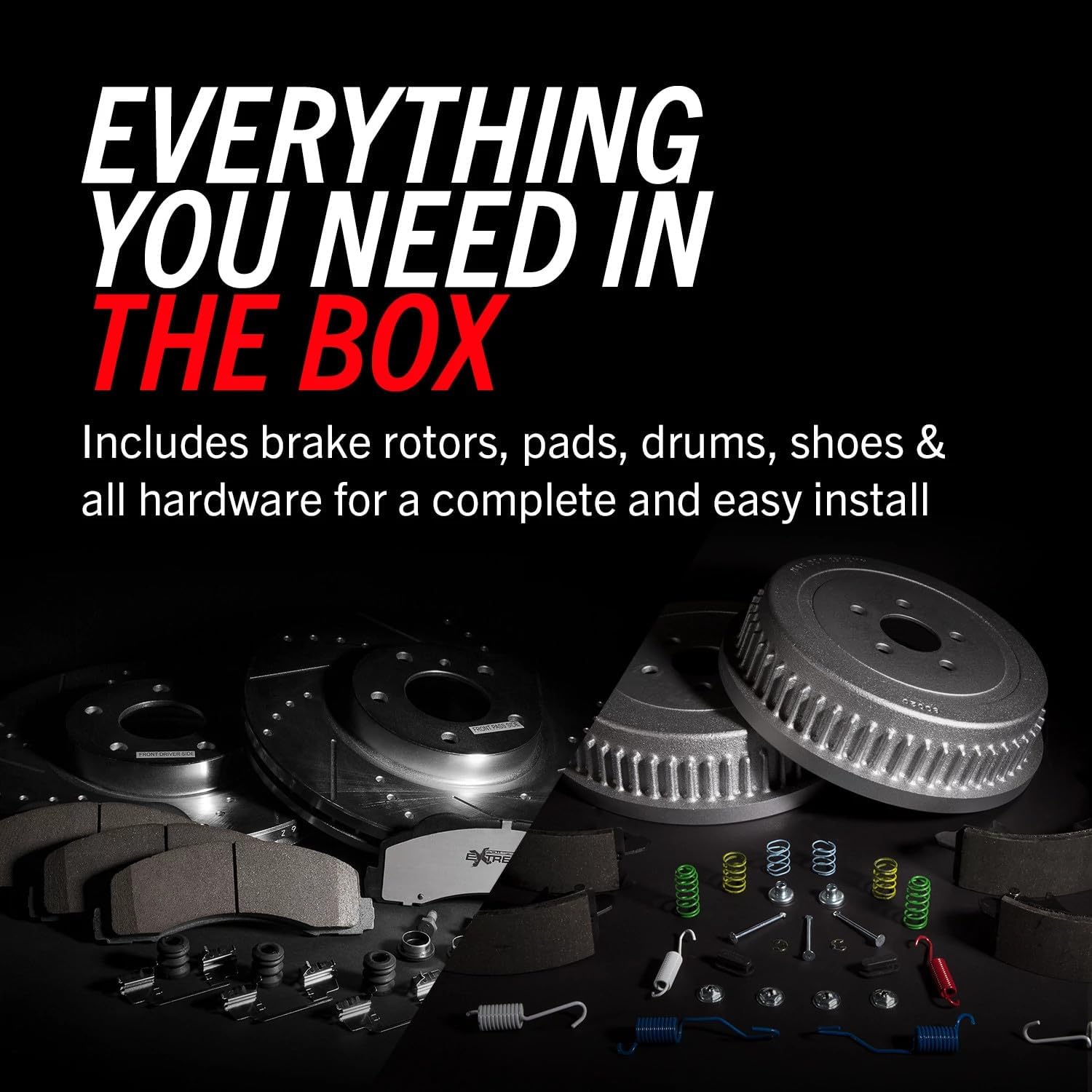 • Evolution premium coated brake drums with necessary hardware.