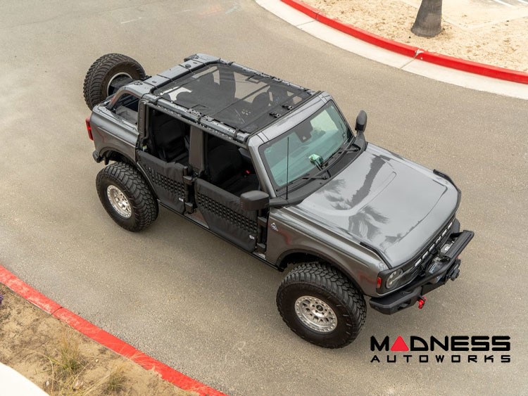 Upgrade your Ford Bronco with our Mesh Bikini Top and enjoy the best of both worlds! This high-quality mesh top provides protection against the sun and heat while still allowing airflow, so you can stay cool and comfortable on those hot summer days. The top also reduces wind noise, making for a more enjoyable driving experience.