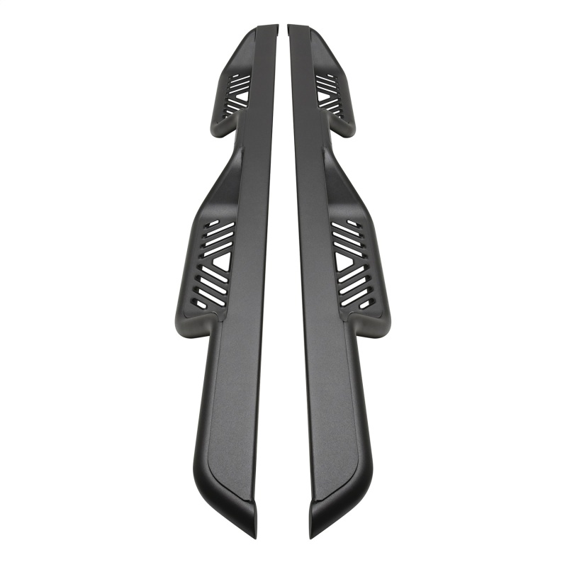 The attention to detail is unmistakable with the innovative 4-inch drop steps that sport a die-stamped step plate. This strategically designed feature not only offers superior traction but also helps in shedding mud, dirt, and debris from your shoes, keeping your Bronco's interior as pristine as its exterior. Crafted for both style and substance, these side steps are a must-have for any serious outdoor enthusiast or daily commuter.