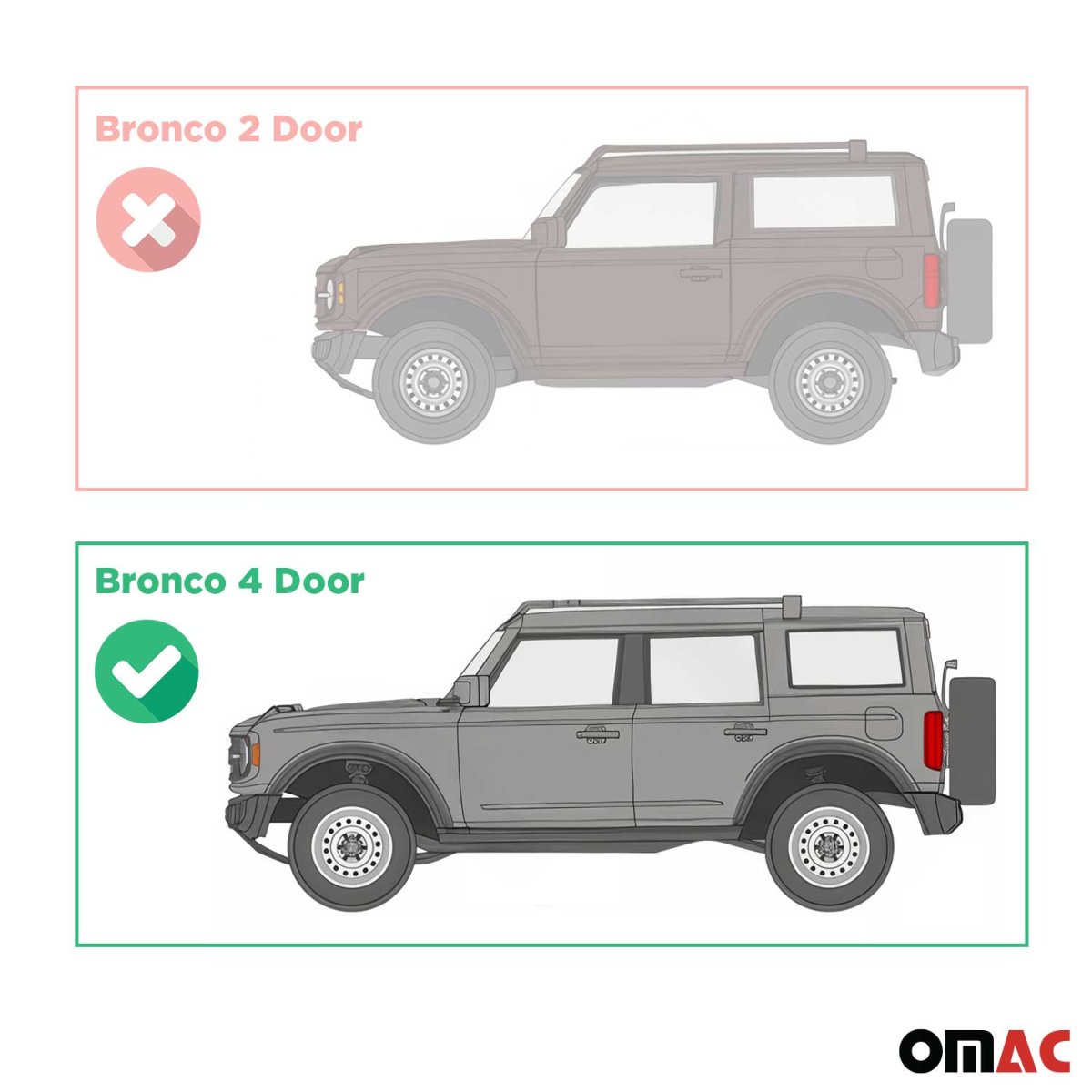 The Ford Bronco Side Steps - Omac USA - OPA Aluminium (183) 2Pcs - Black - 2021 are a perfect addition to enhance the functionality and style of your Ford Bronco. These high-quality side steps are meticulously designed to offer convenience and a rugged look, making your vehicle ready for any adventure.