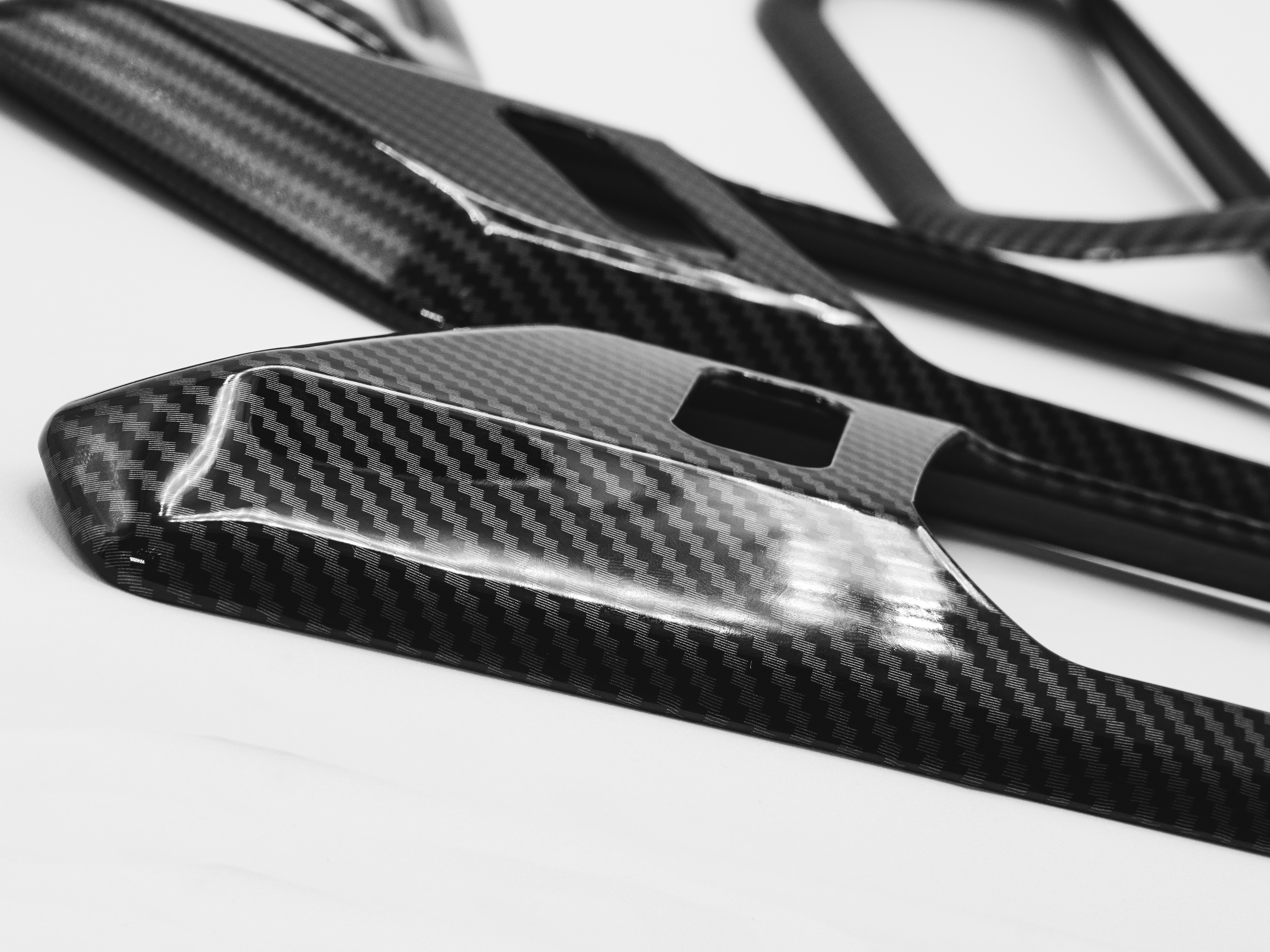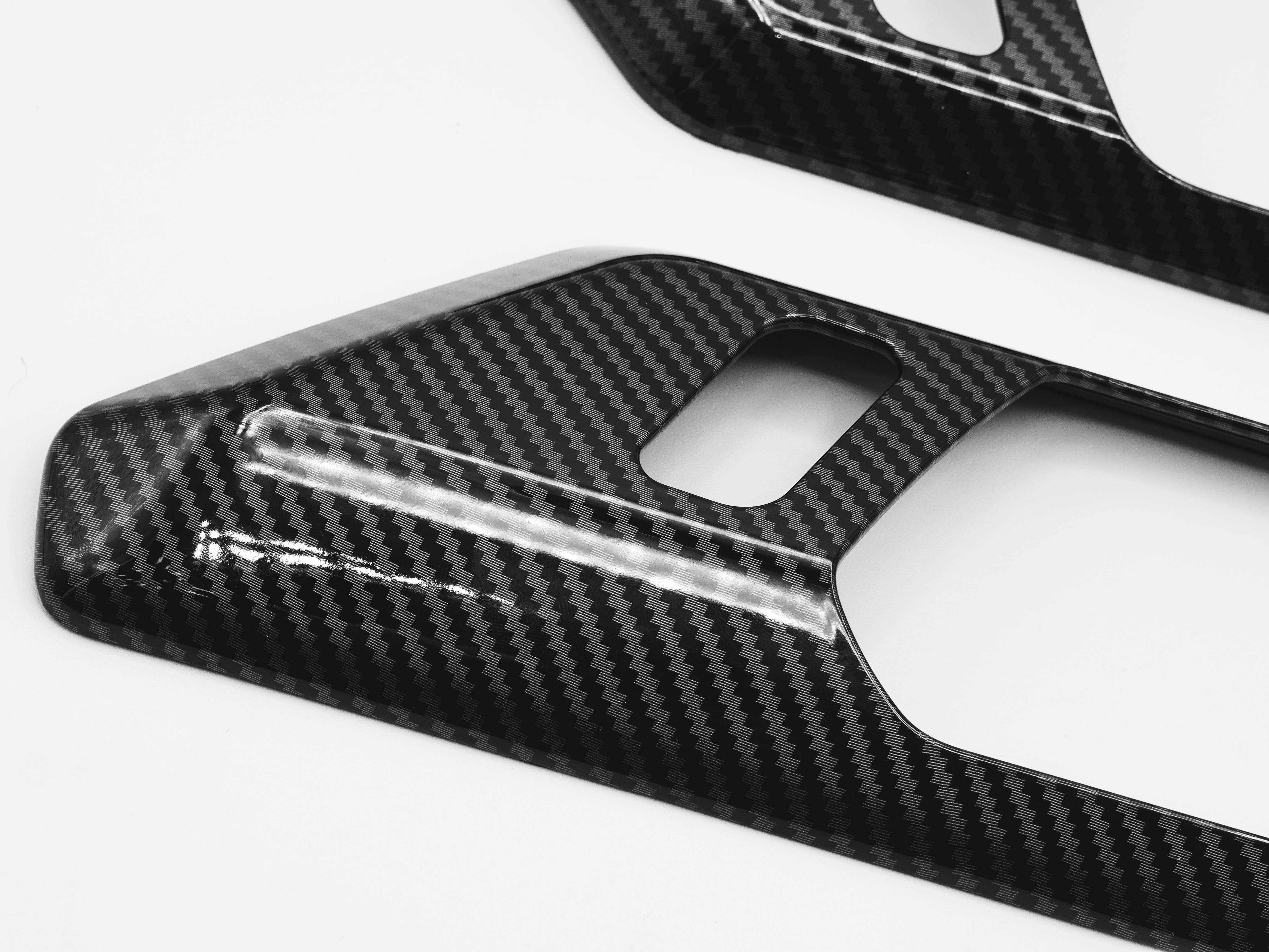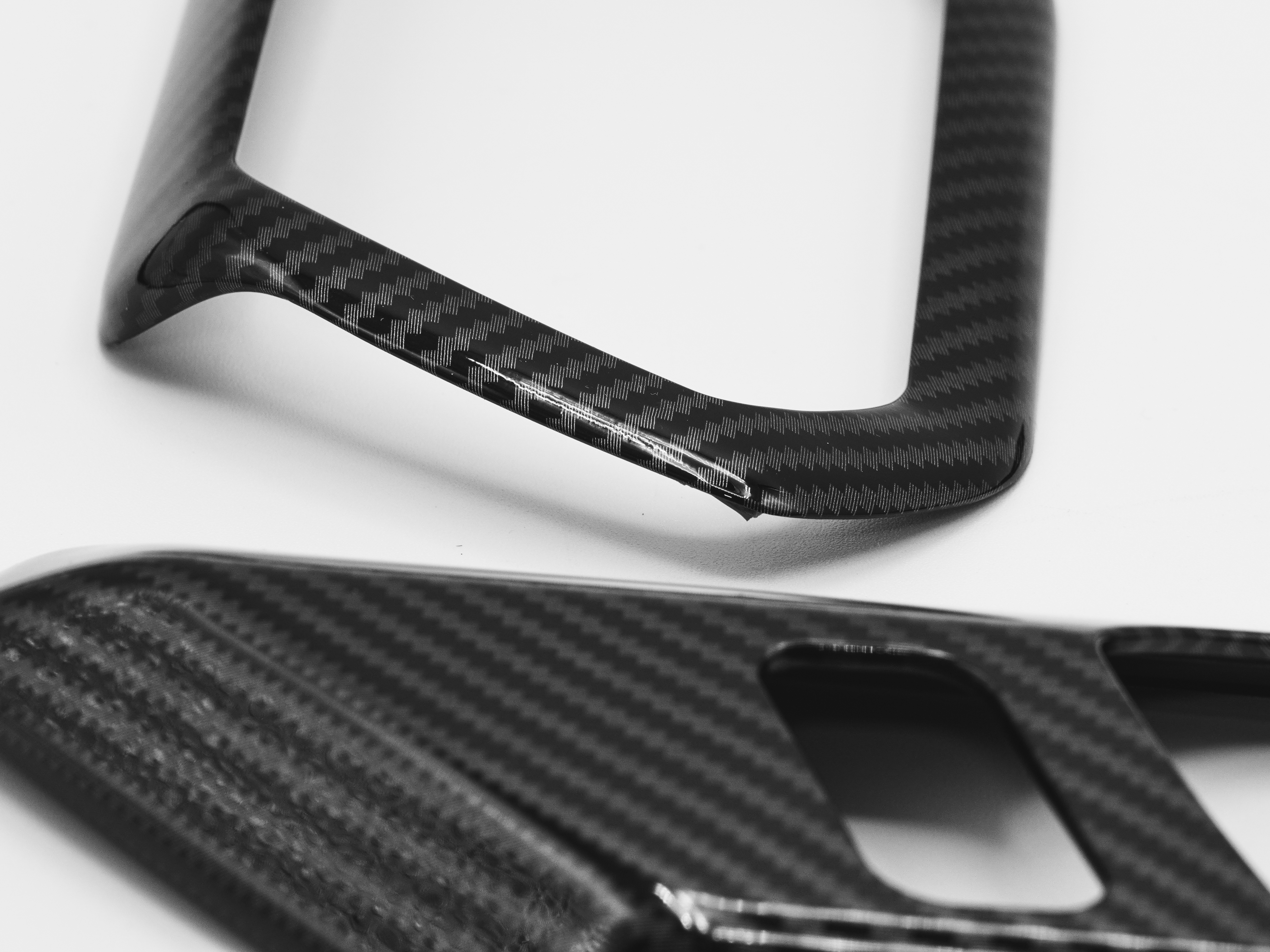 Installing this Interior Door Handle Trim Kit is quick and easy. Simply clean the interior surface, peel off the tape, and stick it in place. For optimal adhesion, you can use a lighter to heat the adhesive tape slightly before applying. You can also remove the self adhesive backing and install with a thin layer of epoxy.