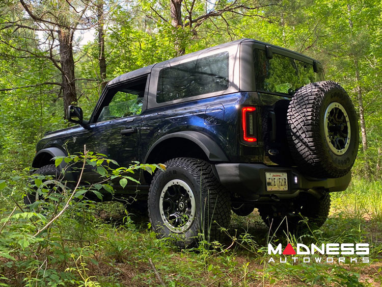 These flush tail lights provide improved aesthetics and functional LED lighting features including high-powered reverse lights and signature perimeter lighting. As you can see in the animation below, these lights wrap tightly to the vehicle body providing a "Flush" mount design which not only looks great but is functional as well. Damaging factory tail lights on trails is not an uncommon issue for owners who often off-road their Broncos. The factory design protrudes out several inches past the body which creates unnecessary exposure to trees, boulders, and other obstacles on tight trails.