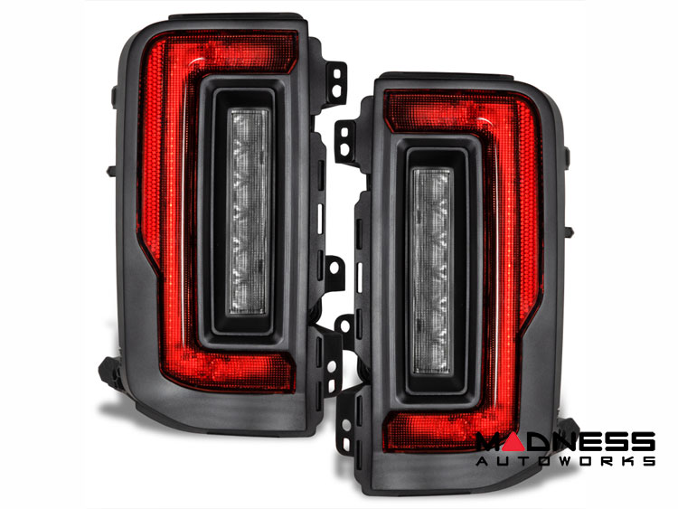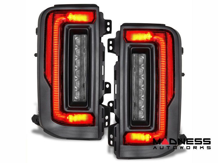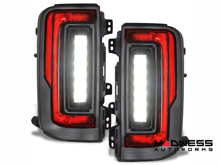 Protruding out significantly less than the factory tail lights, this low-profile design helps avoid potential damage while trail riding. These Ford Bronco tail lights feature an attractive design and functional LED lighting elements including high-powered reverse lights and unique signature perimeter lighting.