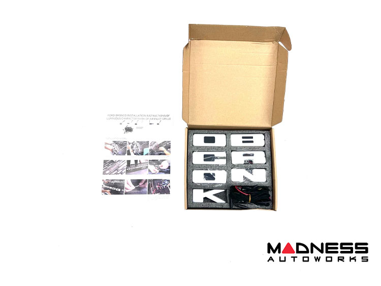 Upgrade your Ford Bronco's front exterior with these LED grille letters and experience a new level of style and functionality. Should you have any questions or wish to know more about installation and compatibility, please don't hesitate to reach out to us. We invite you to visit us at either of our locations where our expert team offers installation and customization services. You can contact us directly at 512-982-9393 for our Austin, Texas location or 562-981-6800 for our Los Angeles, California area. We're here to help you make the most of your Ford Bronco.