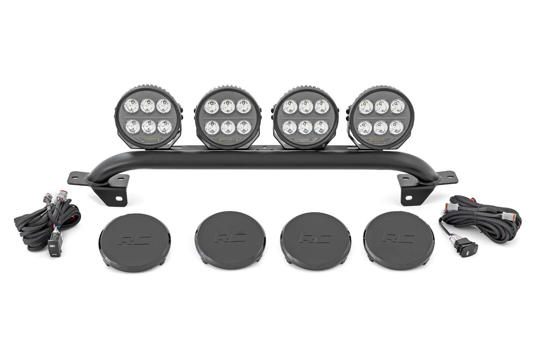 Easy to install, this Ford Bronco Front Light Bar Mount bolts directly to the factory mounting points on the bumper, eliminating the need for drilling and ensuring a hassle-free installation process. You can run it as a low bar option without lights for a clean look, or add lights to enhance your visibility both on and off the road. Don't let limited visibility slow you down - upgrade your Bronco with our Rough Country Light Bar Mount today!