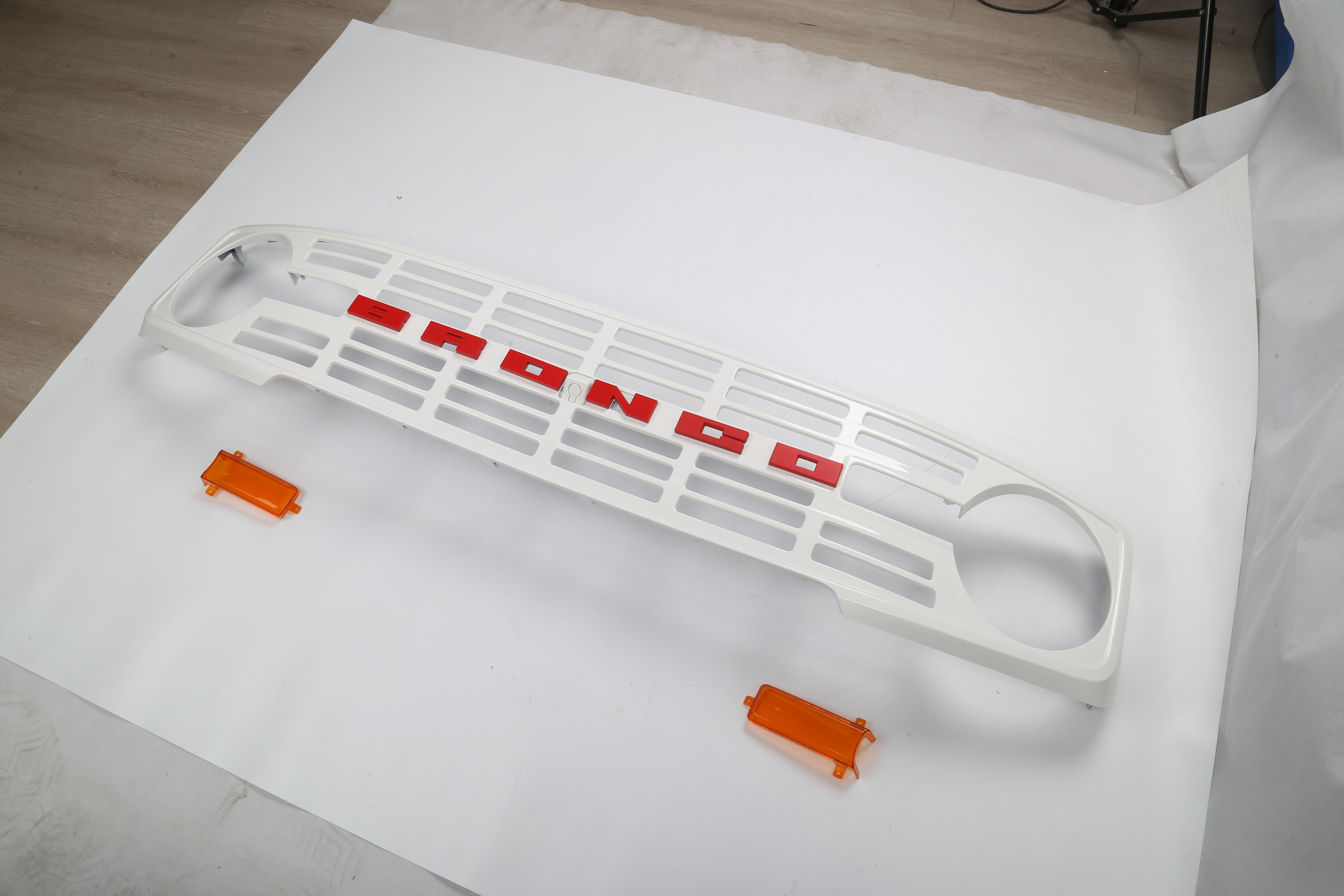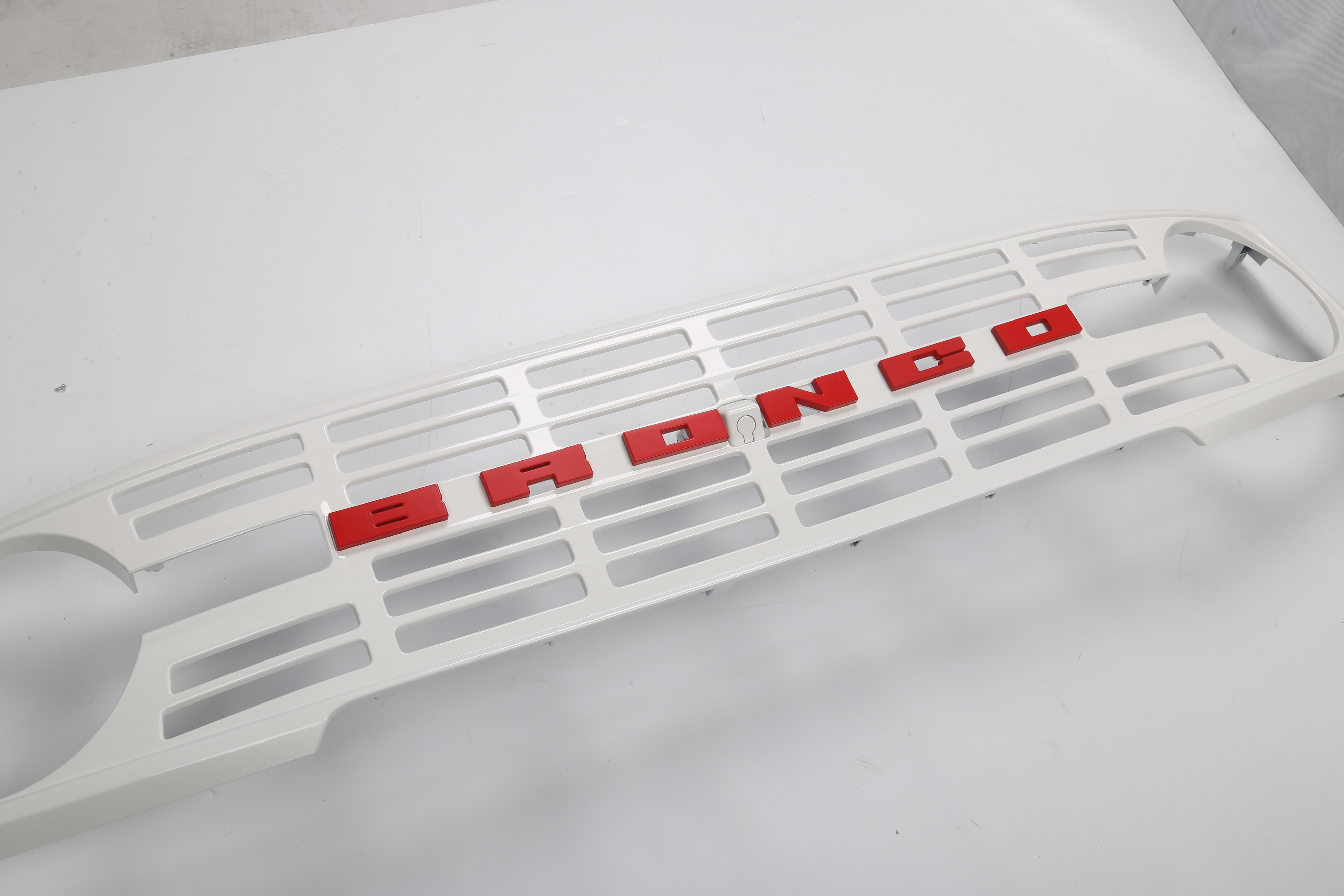 This retro grille in white is the perfect addition to your Ford Bronco 2 or 4 door. Crafted from high-quality ABS material, this grille is not only strong and durable, but it also fits seamlessly with your Bronco, replacing the original grille for a more personalized look.