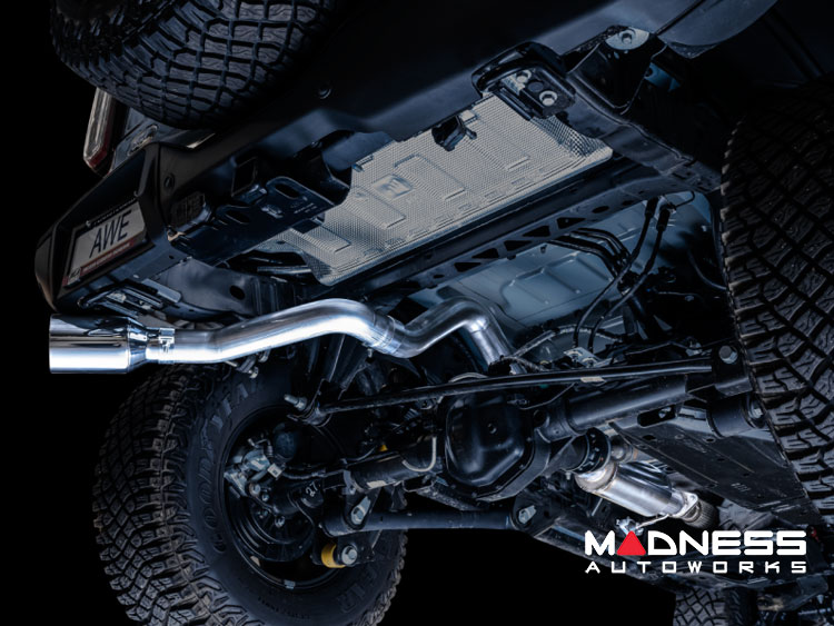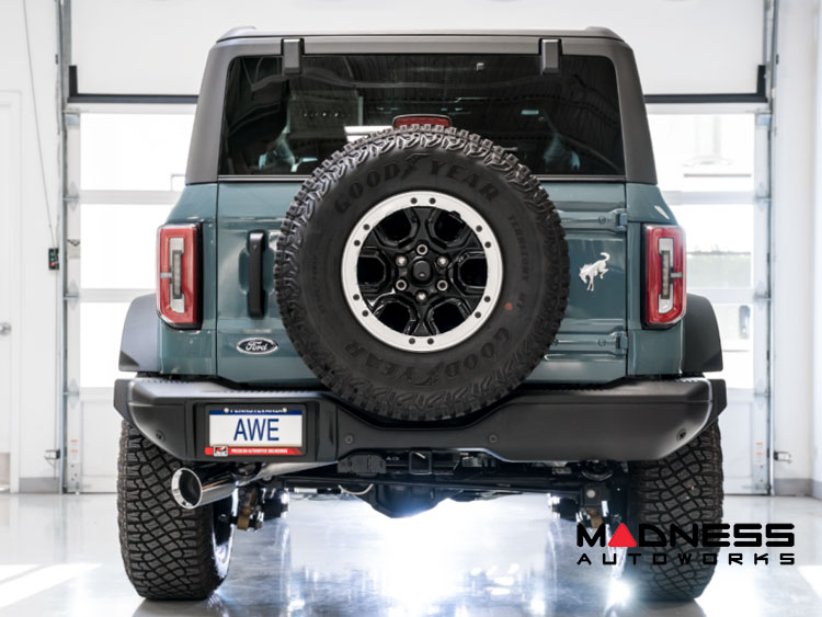 Ford Bronco Performance Exhaust System - Cat Back - Single Rear Exit - AWE - Chrome Tip w/ Bash Guard
