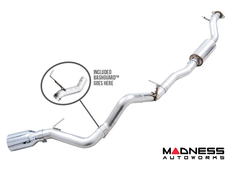 Unique to AWE, the AWE BashGuard comes standard with certain configurations and is designed to provide drivers who frequently crawl rough terrain peace of mind with a simple conversion that shortens the exhaust, so it ends up and over the rear axle. Just unbolt the rear section of the exhaust, and pop the included Bash Guard in its place, and you've got protection from rocks.