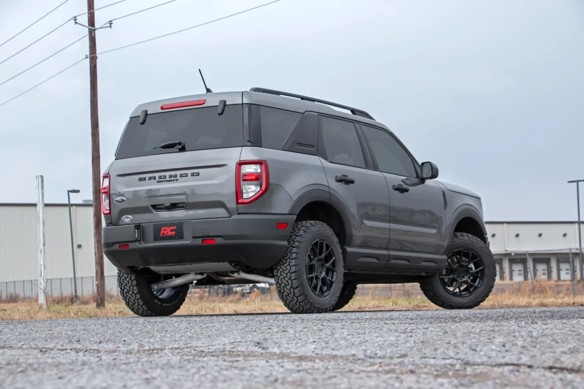 Dive deeper into the Rough Country lift kit. This 1.5-inch lift kit provides an enhanced visual and performance upgrade, allowing you to equip your Bronco Sport with more aggressive 245/65 R17 tires. Specially crafted for the 2021-2025 models, this kit is the go-to enhancement for those looking to embrace the classic Bronco off-road style. While the installation process is straightforward, the benefits are vast: a lifted, leveled stance and the ability to tackle rough terrains more effectively.